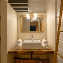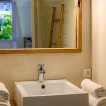 une salle d’eau avec douche à l’italienne, vasque et toilettes. (sèche-cheveux fourni) ;